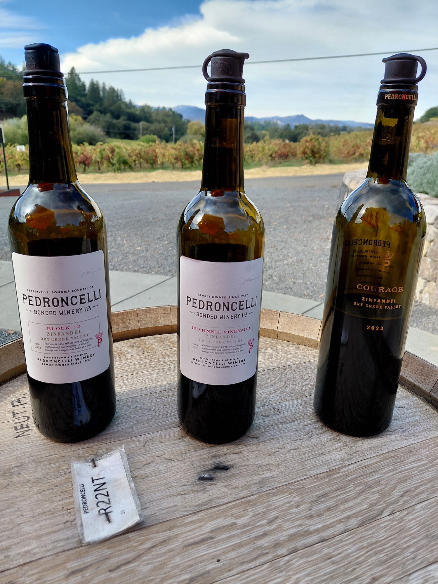 Of course, a tasting in the Dry Creek Valley wouldn’t be complete without Zinfandel and Pedroncelli makes some great ones. This time we had a side-by-side-by-side tasting of the 2023 Block 13, the 2022 Bushnell Vineyard and the 2022 Courage, all 100% Zinfandels.